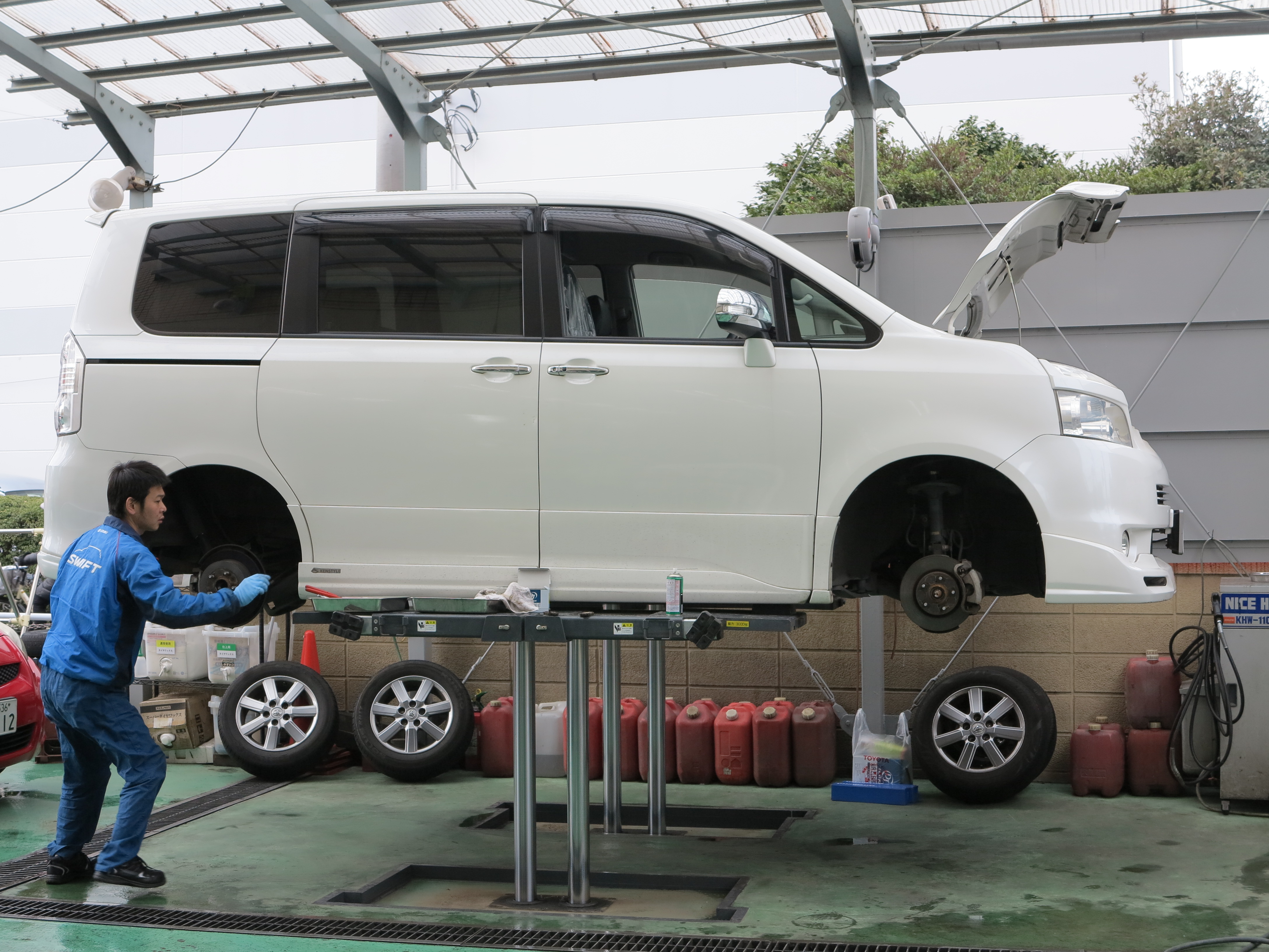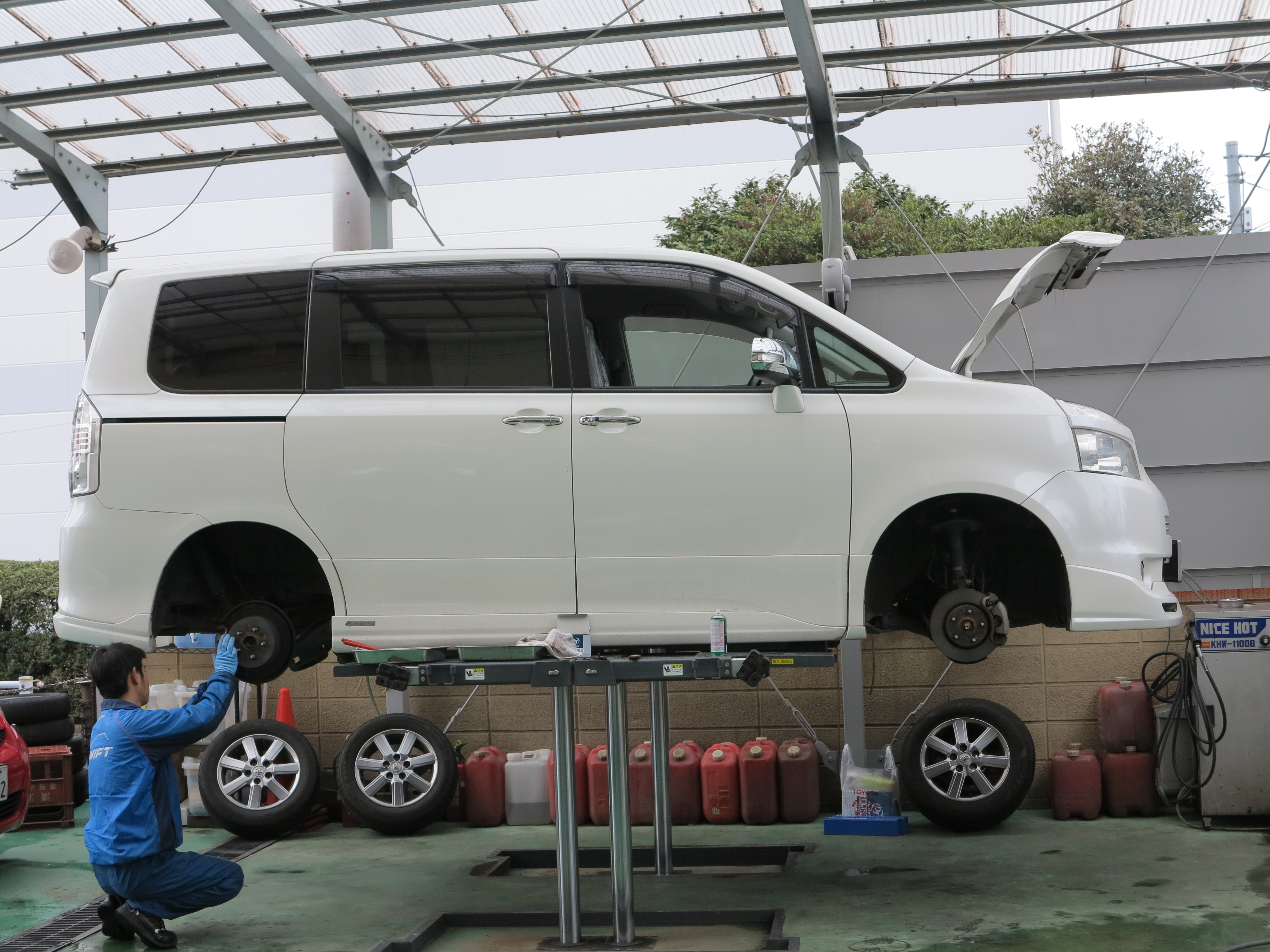 上記の写真では、お車の足回りの点検・整備をしているところを写しおりますが、