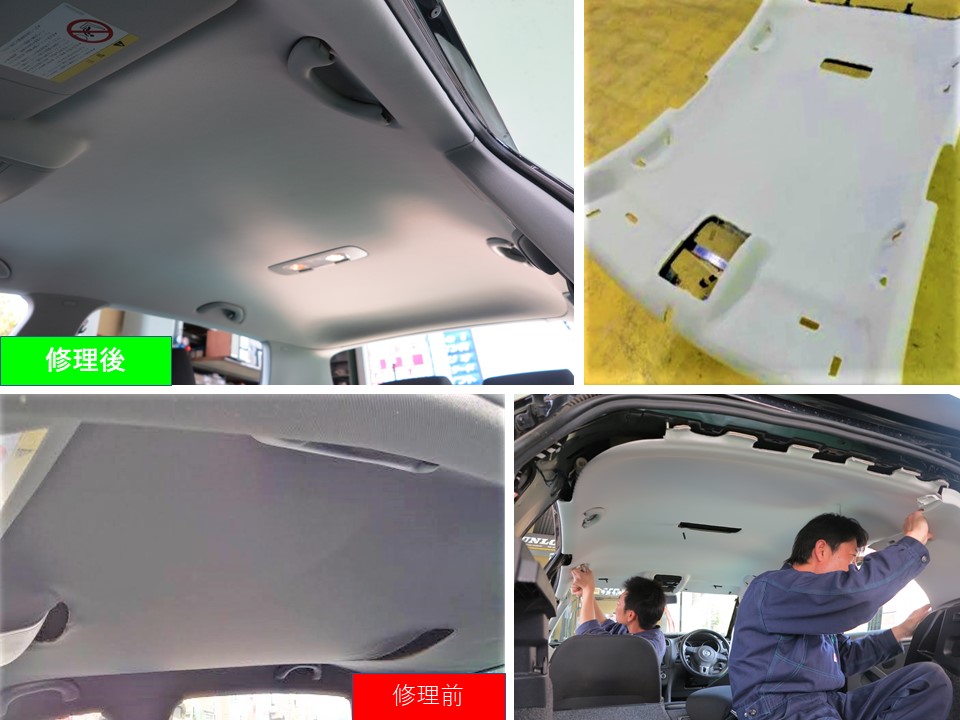 修理させて頂きました天井は たるみ等がなく新車の様に蘇りキレイです。