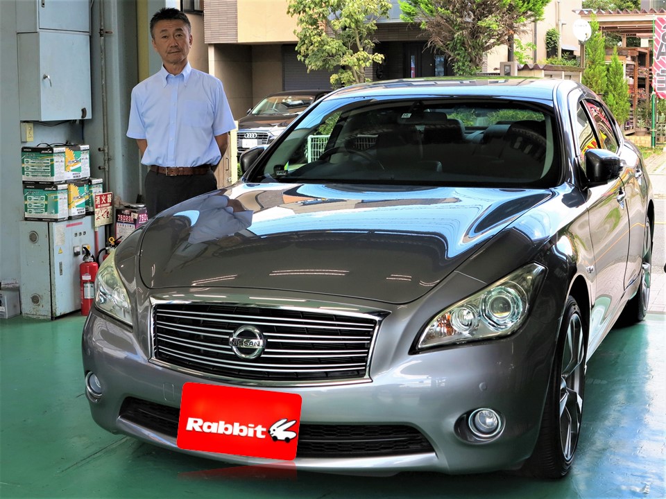 ラビット三鷹東八通り店さんからフーガ2500 GT Pを購入しました。こちらのお店から車を選んで頂いたのは2代目です。前の車はディアマンテでした。社長さんは前の車の時から親切に色々と相談頂いていたので信頼がありました。今回のフーガは競りから相談にのって頂き、グレードや色から諸々相談にのって頂きました。納車して大満足です。更に言えばラビット三鷹東八通り店さんのご対応に大満足です。長くお付き合いさせて頂けるお店です。この度はありがとうございました。これからも宜しくお願い致します。感謝!