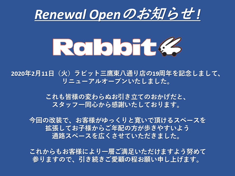 この機会に是非ラビット三鷹でお車お売り頂けると嬉しいです。