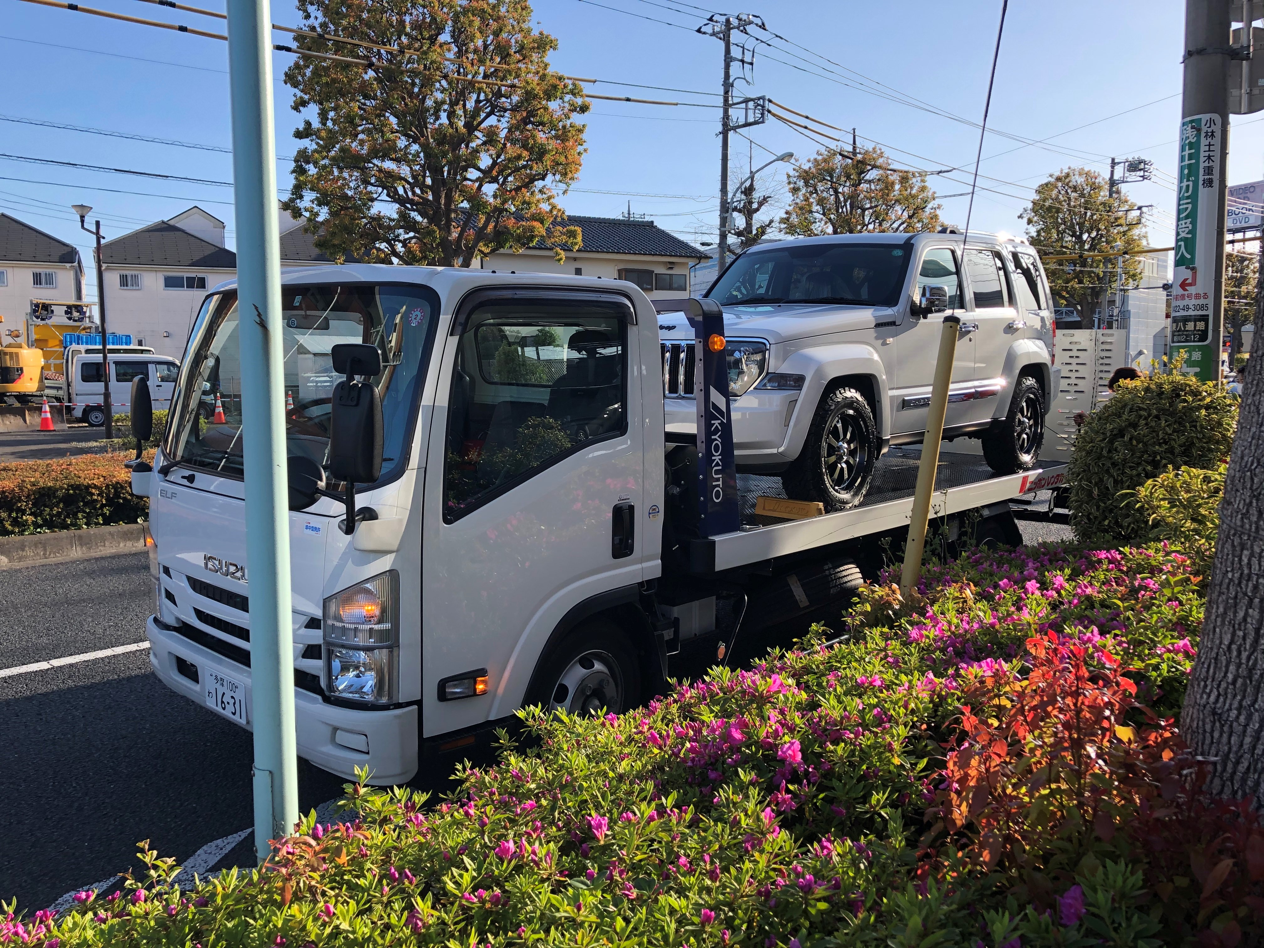 本日、積載車にお車を乗せて早朝に出発して、