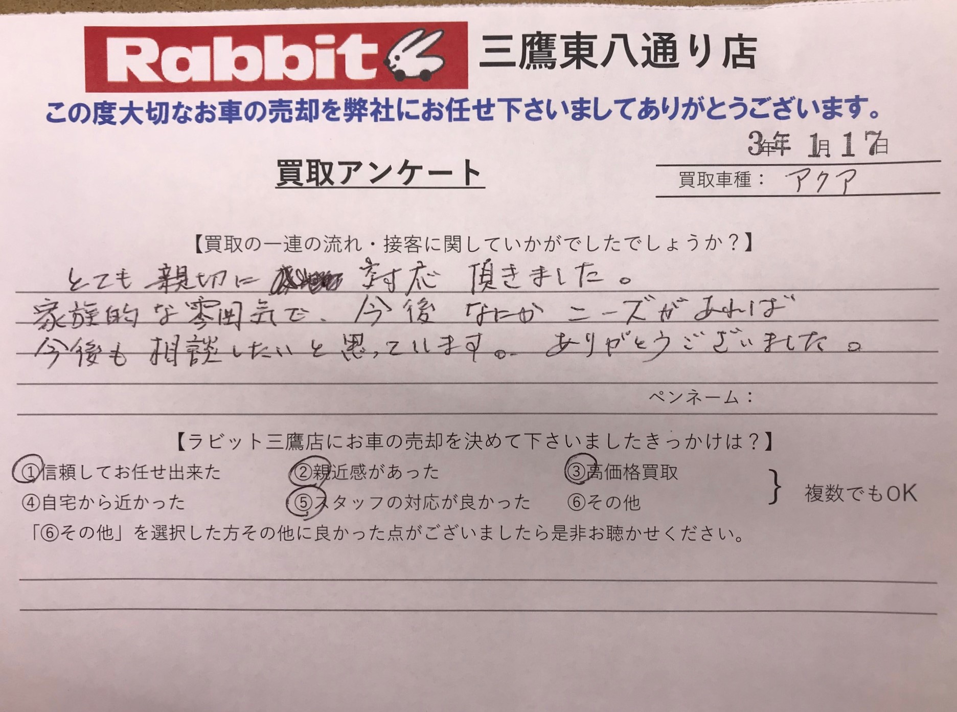 N様のおかげ様でとても良い買取スタートが切れました!