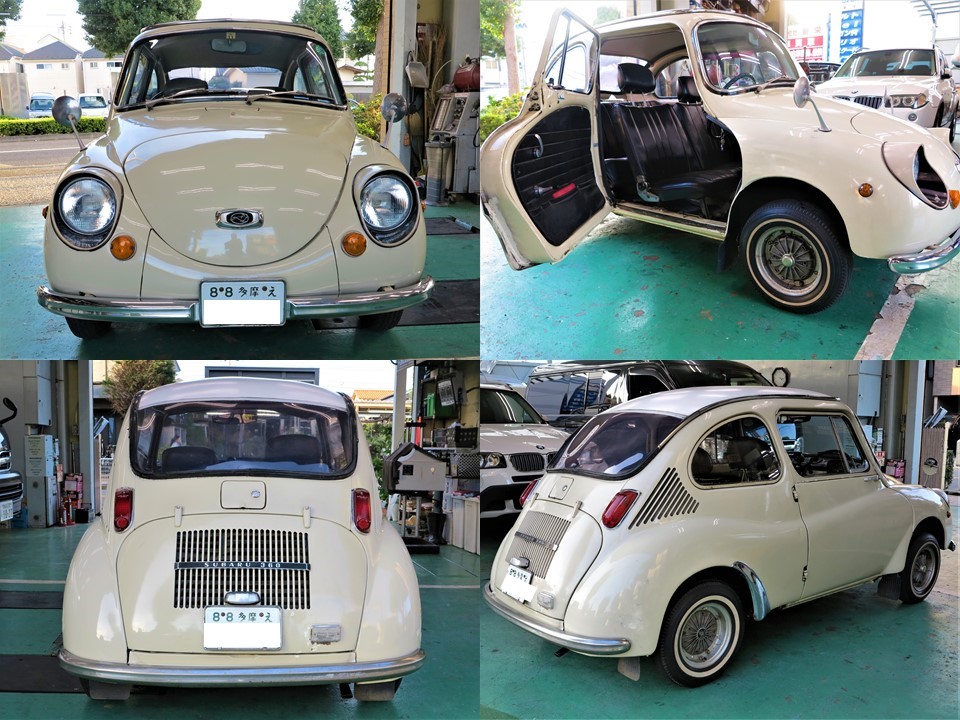 本日、とても珍しい日本を代表するスバル360が車検のため入庫いたしました!!