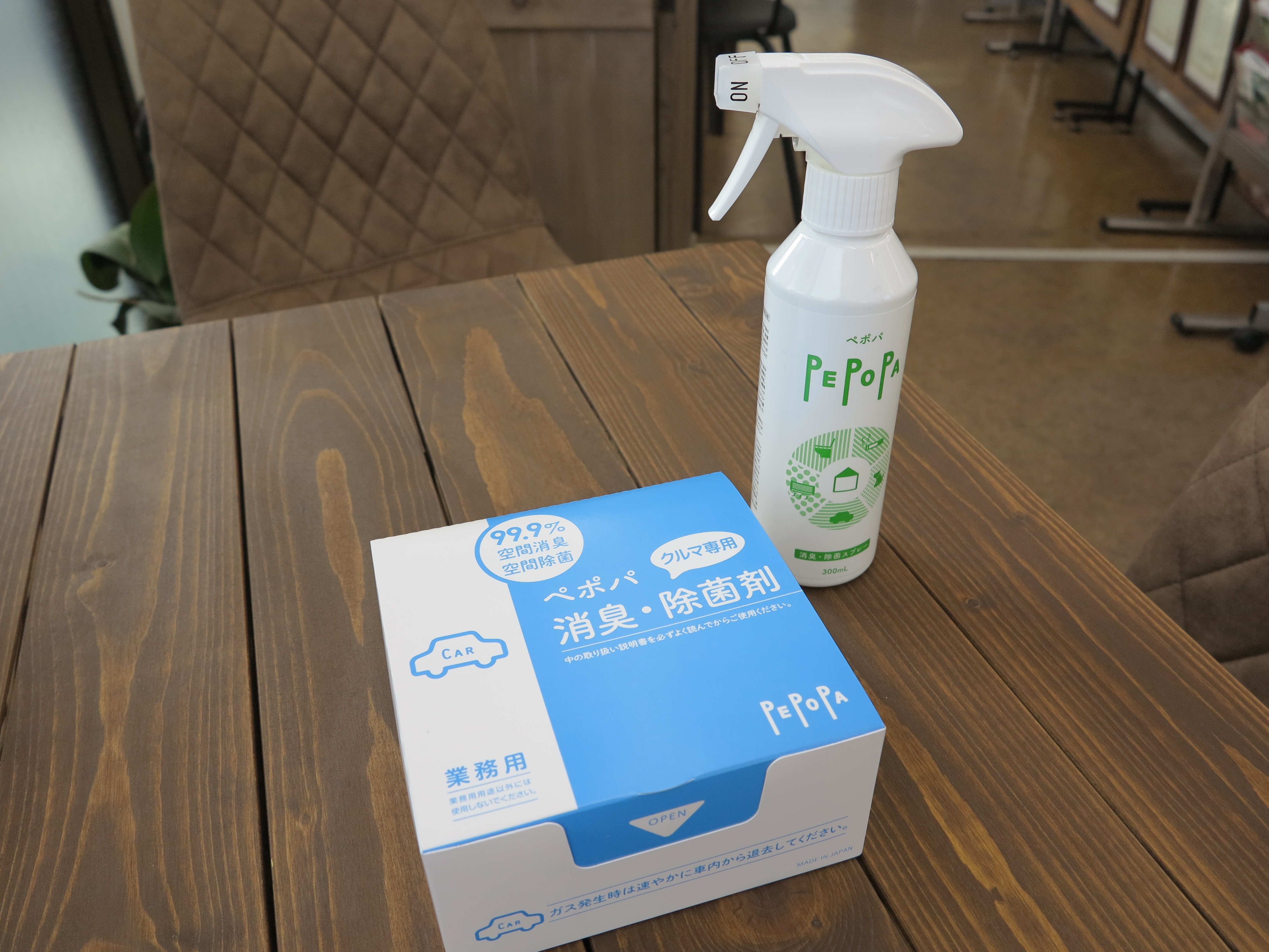 車内の抗菌、除菌剤の販売をいたします。お客様からのお問い合わせも多くお勧めできる商品がありますのでご紹介いたします。こちらの商品は消臭効果と除菌効果に優れたものとなります。手軽に使えるスプレータイプと本格的な業務用タイプがございます。